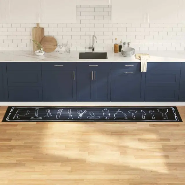 vidaXL Kuhinjska podloga Toile Črna 300 x 60 cm Žamet