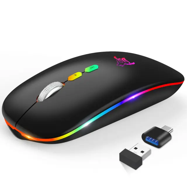 Tiha miška z dvojnim načinom delovanja: Brezžična Bluetooth 5.1 z možnostjo polnjenja B