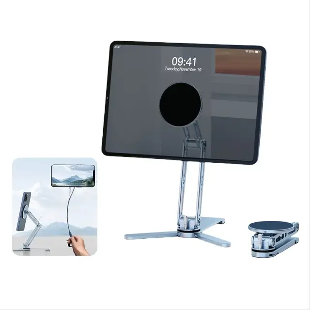 Magnetno aluminijasto stojalo za telefon in tablični računalnik - srebrno