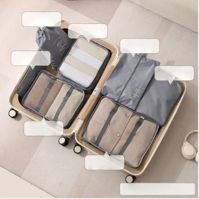 7-delni komplet organizatorjev za toaletne potrebščine in kozmetiko za potovanja - Kocke za pakiranje prtljage DarkGrey