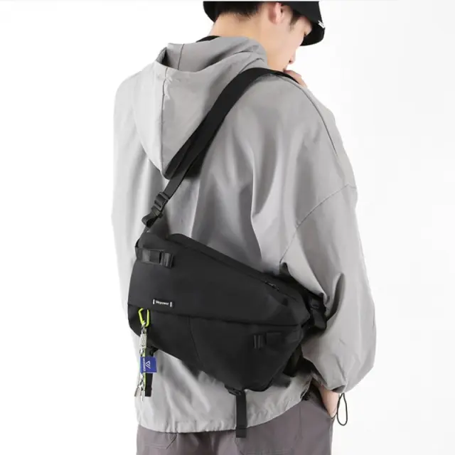 Moška najlonska torba za čez telo - Črna priložnostna torba z nastavljivim pasom
