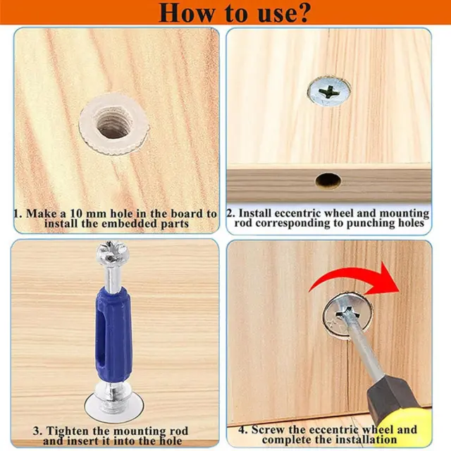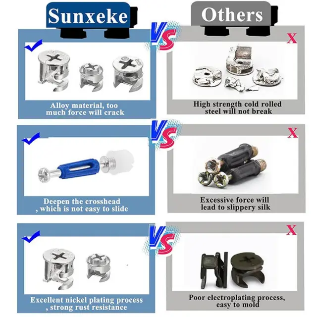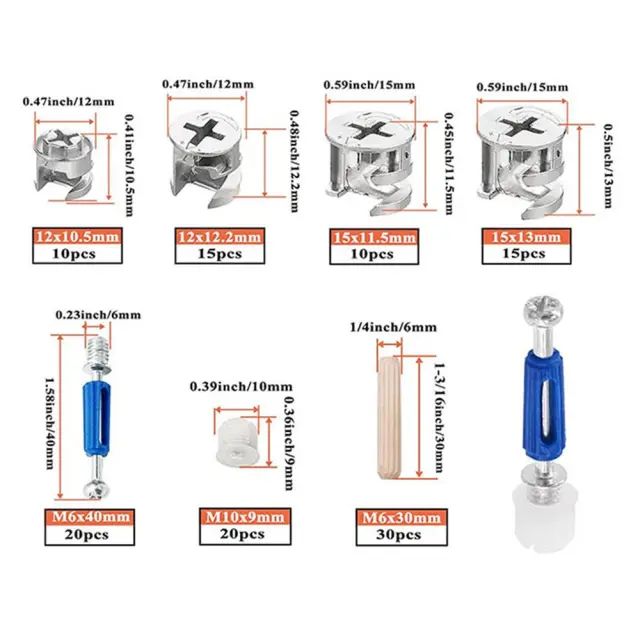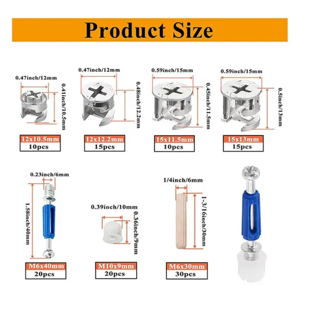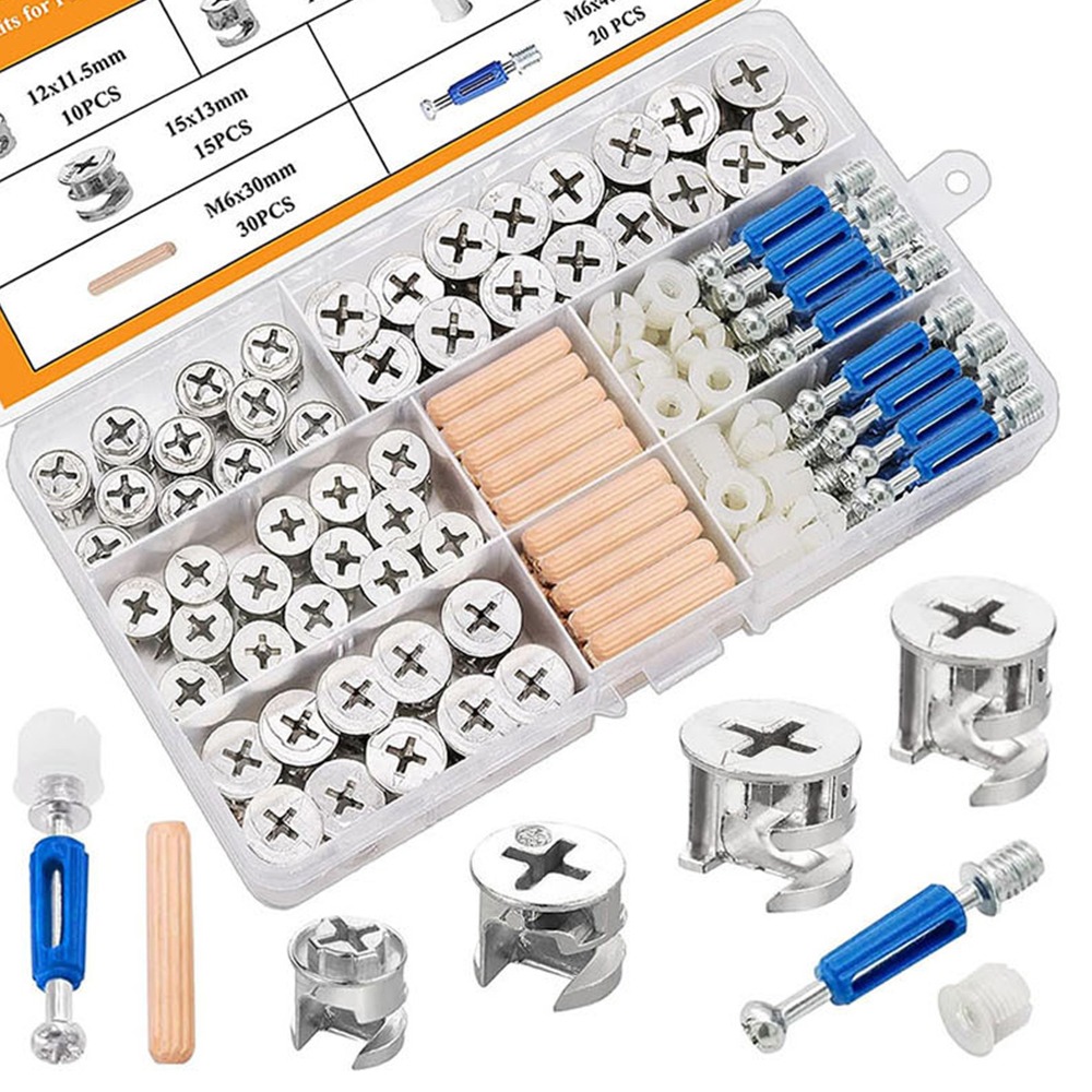 120PCS 3-v-1 Set za pohištvene spoje - ekscentrični vijaki, mozniki in matice