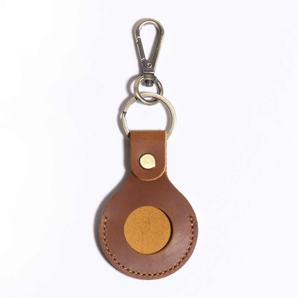Premium Usnjen Ovitek za AirTag z Obeskom za Ključe - Rjav Brown