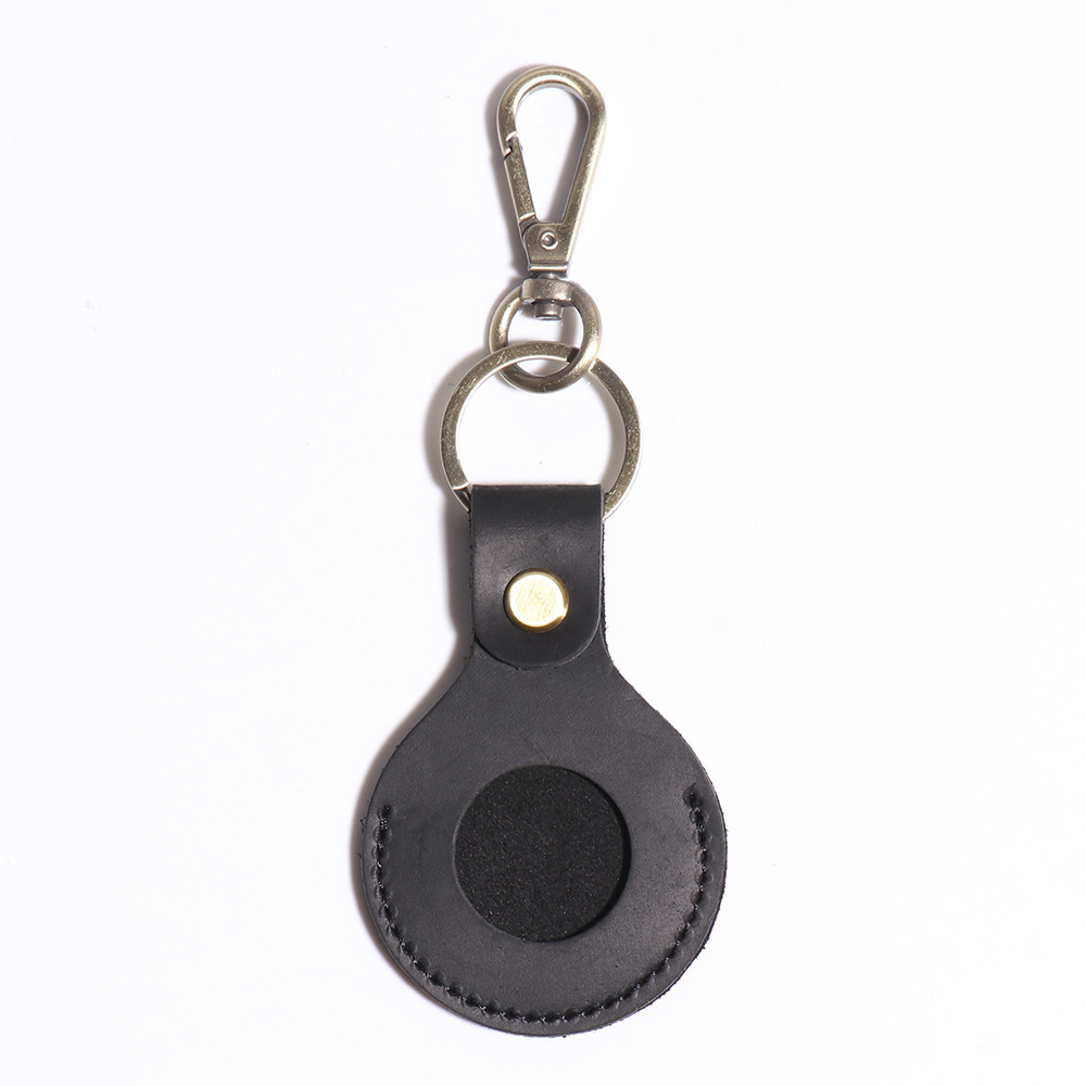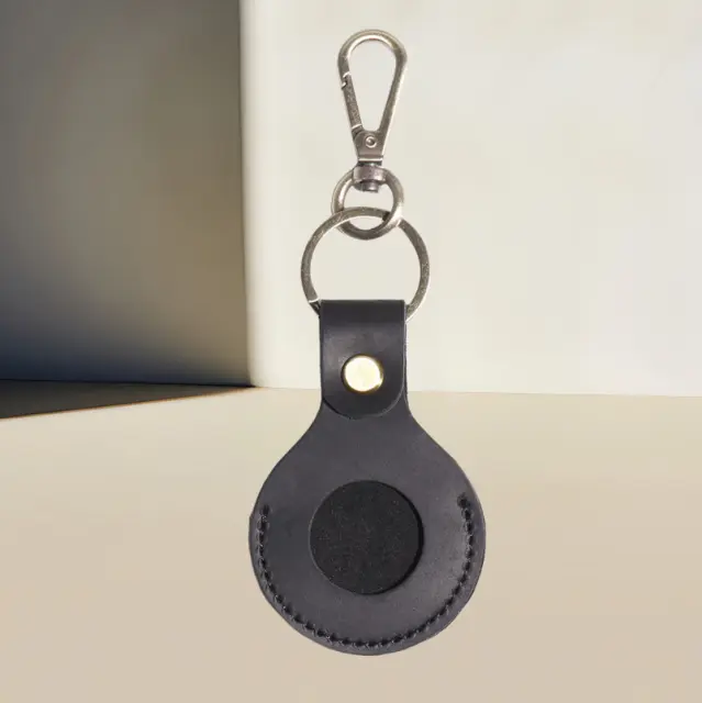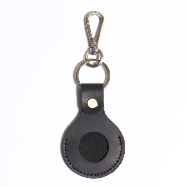 Premium Usnjen Ovitek za AirTag z Obeskom za Ključe - Rjav Black