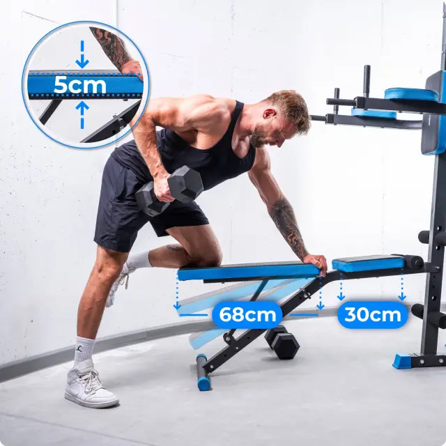 🔹 Nastavljiva klop – 7 stopenj naklona od 0° do 90°.