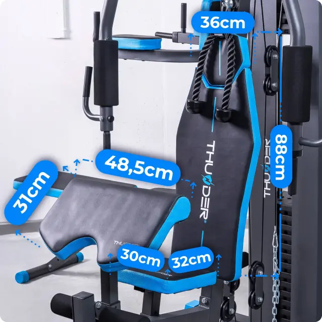 Model ⚡THUNDER® HEAVY združuje moč, stabilnost, večfunkcionalnost in vrhunsko ergonomijo – idealno za celotno telesno vadbo v udobju doma.