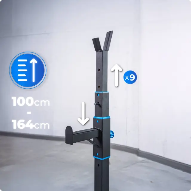 Enodelni stojalo za uteži ⚡THUNDER® CARMI⚡ – nastavljiva višina 100–164 cm, nosilnost 200 kg, robustna jeklena konstrukcija