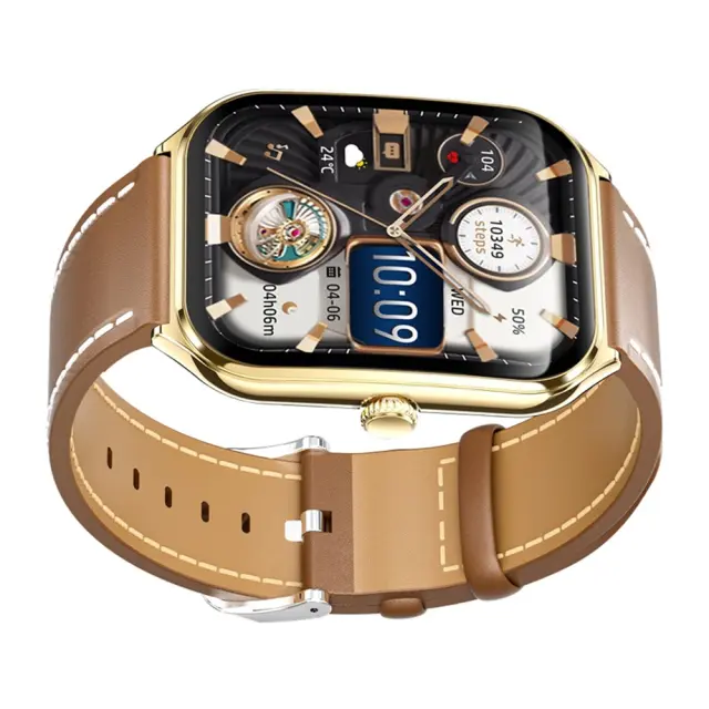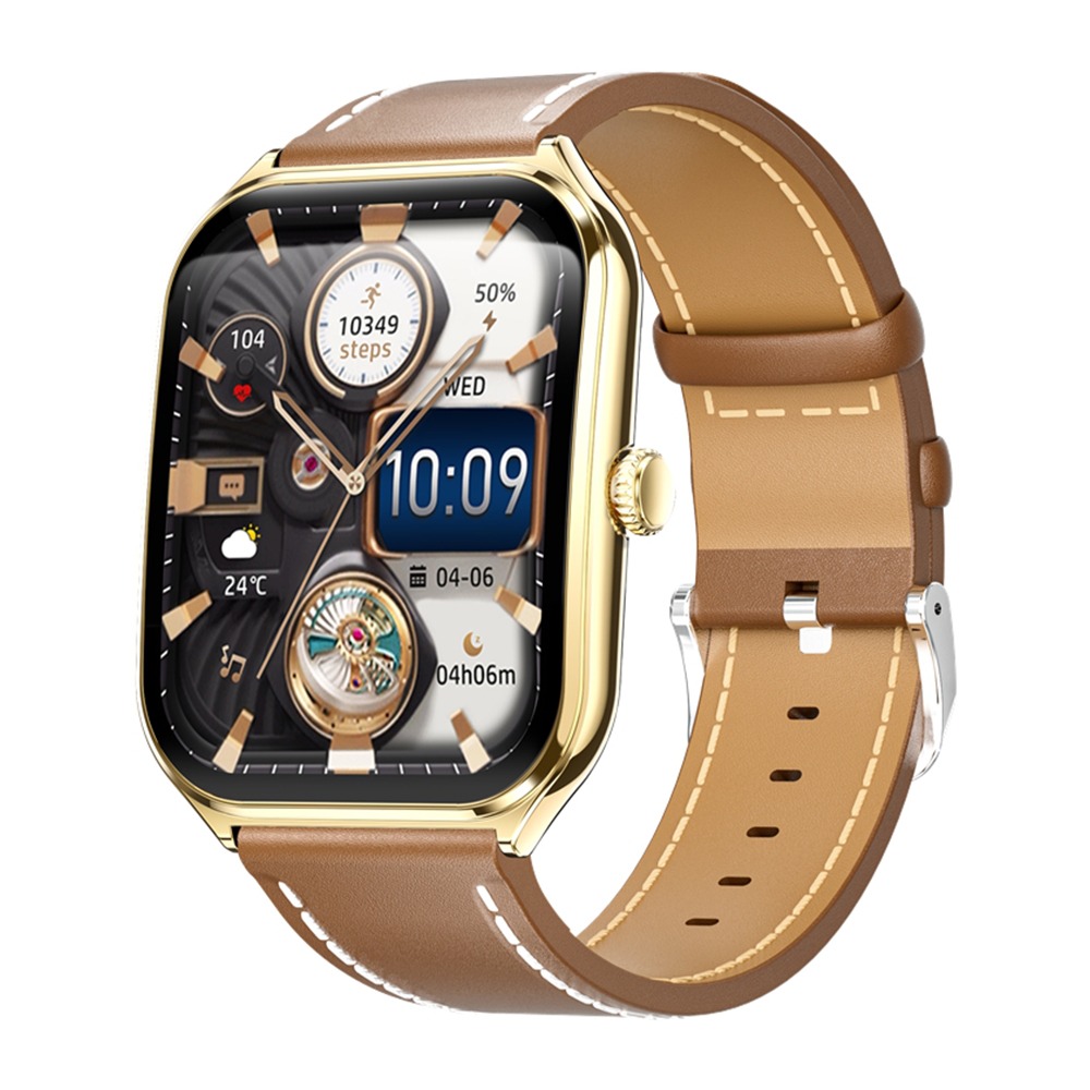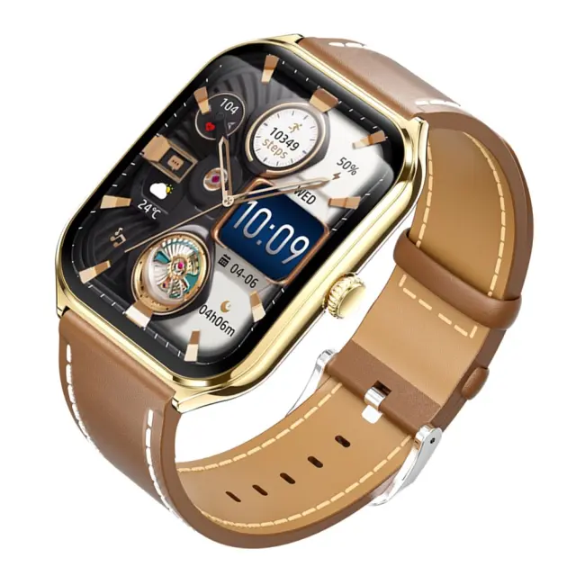 Pametna ura Titanium Gold z rjavim PU usnjenim paščkom - sledenje zdravju