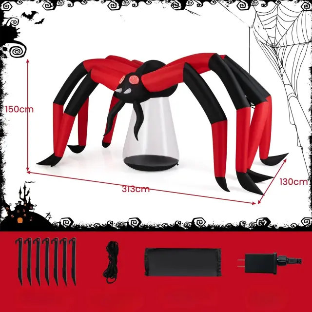 Pajek z LED lučmi Napihljiva dekoracija za noč čarovnic
