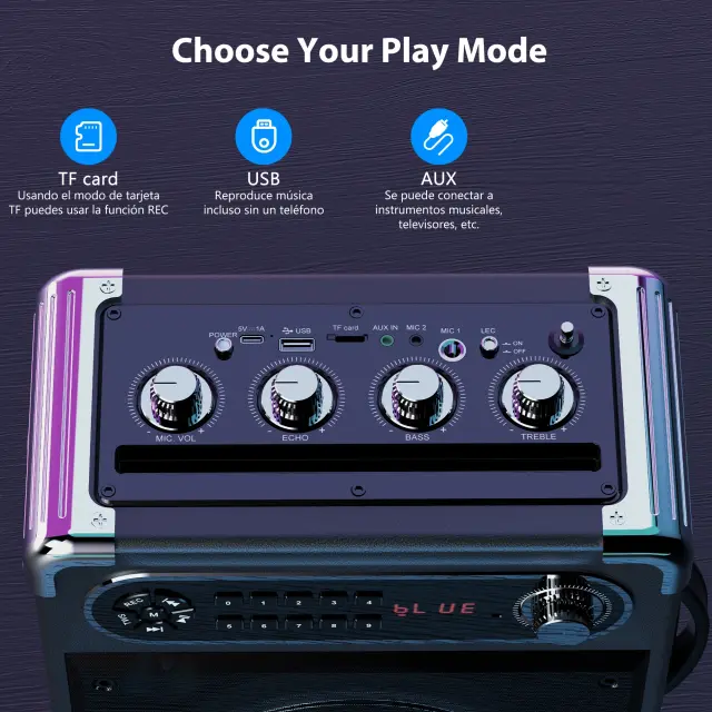 Karaoke naprava, Bluetooth 5.3, 30 W moči, 8 ur življenjske dobe baterije, dva mikrofona, dinamična LED osvetlitev