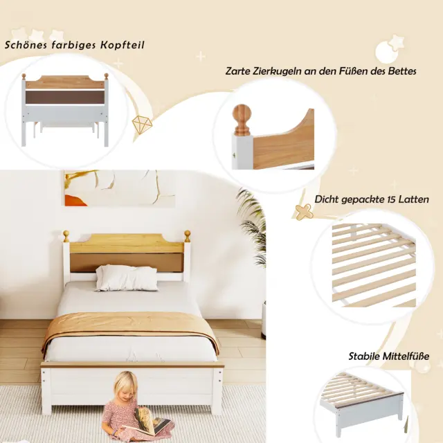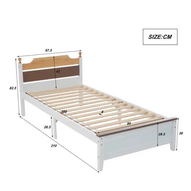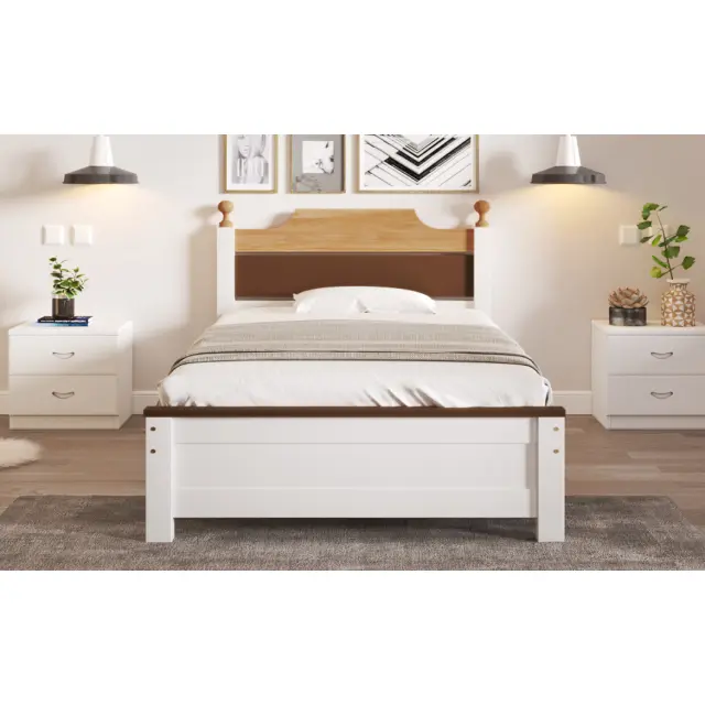 Posteljni okvir iz borovega lesa z vzglavjem/vznožjem iz MDF, barvno uokvirjen, bel, 90x200 cm