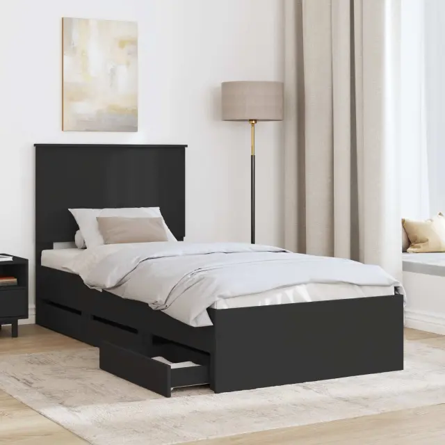 vidaXL Konstrukcija postelje Črna 90 x 200 cm Inženirsko leseno