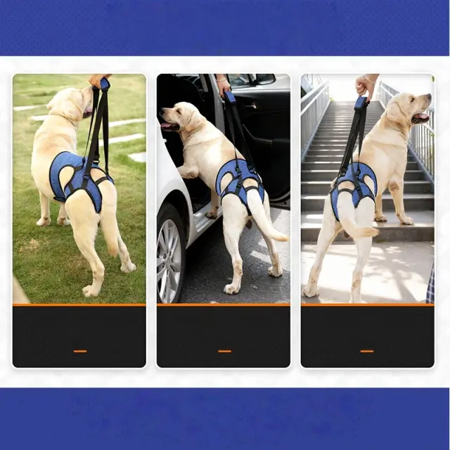 Izboljšana podpora mobilnosti: Ta pas za podporo zadnjih nog psov je zasnovan za izjemno pomoč psom z omejeno mobilnostjo zaradi poškodb, operacij, artritisa ali starosti. Omogoča vam, da psu enostavno pomagate pri hoji, vzpenjanju po stopnicah ali vstopanju in izstopanju iz vozil, kar izboljšuje kakovost življenja in jim omogoča uživanje v aktivnostih na prostem. Pas enakomerno porazdeli težo, zmanjšuje obremenitev zadnjih nog in spodbuja udobno gibanje. Idealen za pooperativno rehabilitacijo in obvladovanje težav z mobilnostjo, povezanih s starostjo, je ta pas ključno orodje za lastnike hišnih ljubljenčkov, ki želijo podpreti svoje pasje spremljevalce.