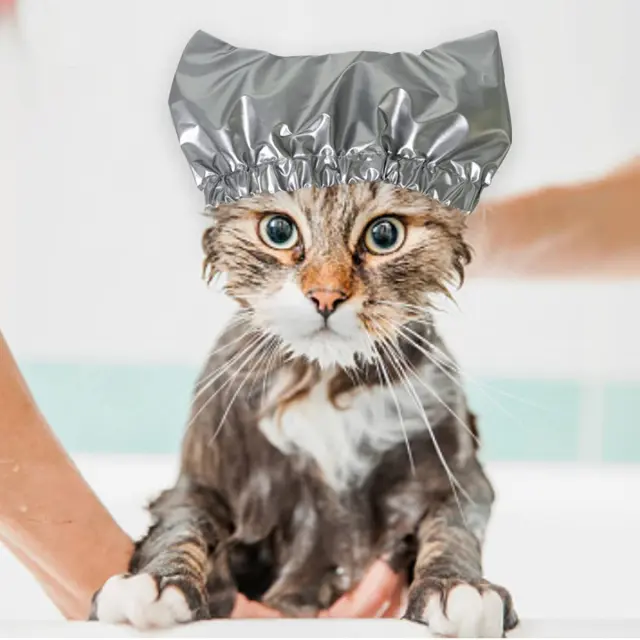 Nepremočljiva kapa za prhanje za hišne ljubljenčke - zaščita za ušesa Silver S