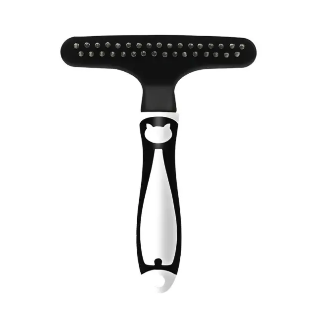Dvostranski dizajn: Ta krtača za hišne ljubljenčke ima dvostranski dizajn z različno gostoto zob. Ena stran se učinkovito spopade z rogoznicami, zapletki in vozli, medtem ko druga stran gladko drsi skozi plašč za odstranjevanje in končno obdelavo.