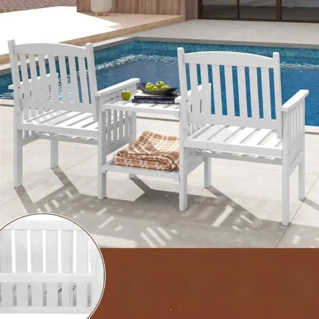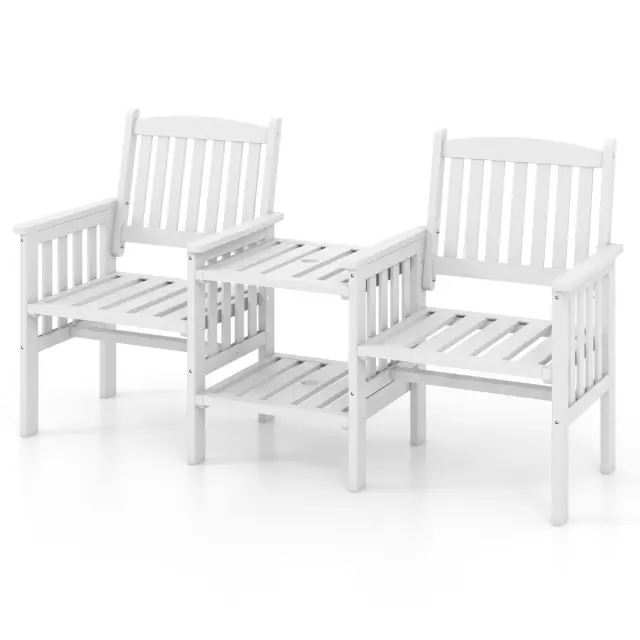 Dvosedežna vrtna klop Lesena miza z luknjo za dežnik