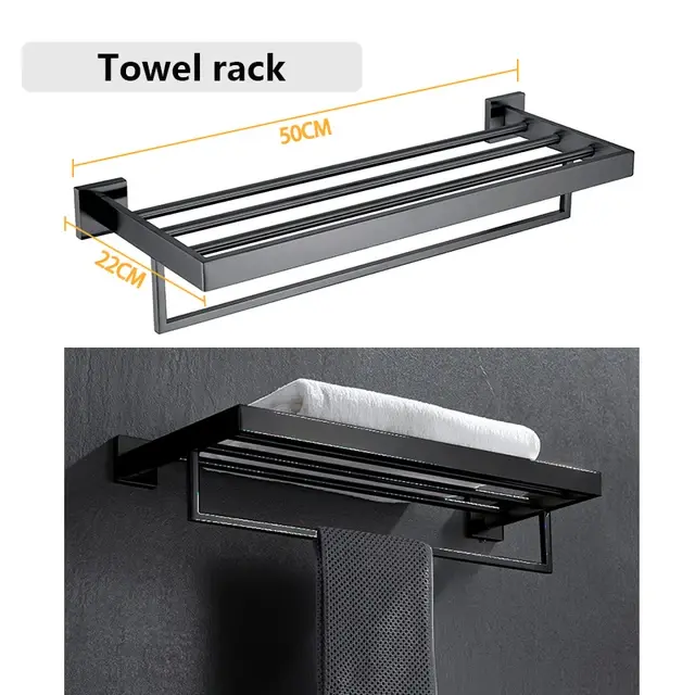 Komplet kopalniške opreme, črn, kljuka za plašč, držalo za brisače,