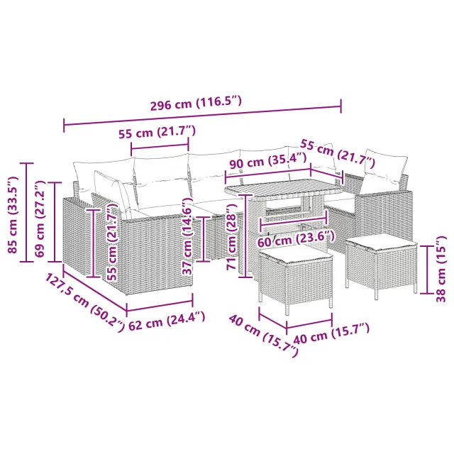 Modularna vrtna kavna garnitura prinaša svež spoj funkcionalnosti in stila za vaše zunanje prostore. Z prilagodljivo zasnovo omogoča različne konfiguracije za vsako postavitev na vrtu ali terasi. Ta garnitura z čistimi linijami in brez odvečnega okrasja izžareva eleganco, ki se lepo vklaplja v vsak moder zunanji prostor.