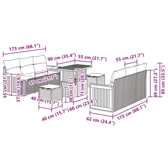 Preuredi svoj vrt ali teraso v stilsko zatočišče z našim modularnim vrtnim kavčem. Ta sodoben set združuje naravne materiale z funkcionalnostjo, kar omogoča prilagodljive sedežne aranžmaje, ki se prilagajajo tvojemu prostoru. Elegantne linije in nevtralni odtenki ustvarjajo mirno okolje za družabna srečanja ali tihe večere pod zvezdami. Modularni elementi vabijo k ustvarjalnosti, kar ti omogoča, da oblikuješ postavitev, ki ustreza tvojim potrebam za celovito izkušnjo na prostem.