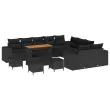 vidaXL Vrtna sedežna garnitura z blazino 14 pcs Črna poli ratan