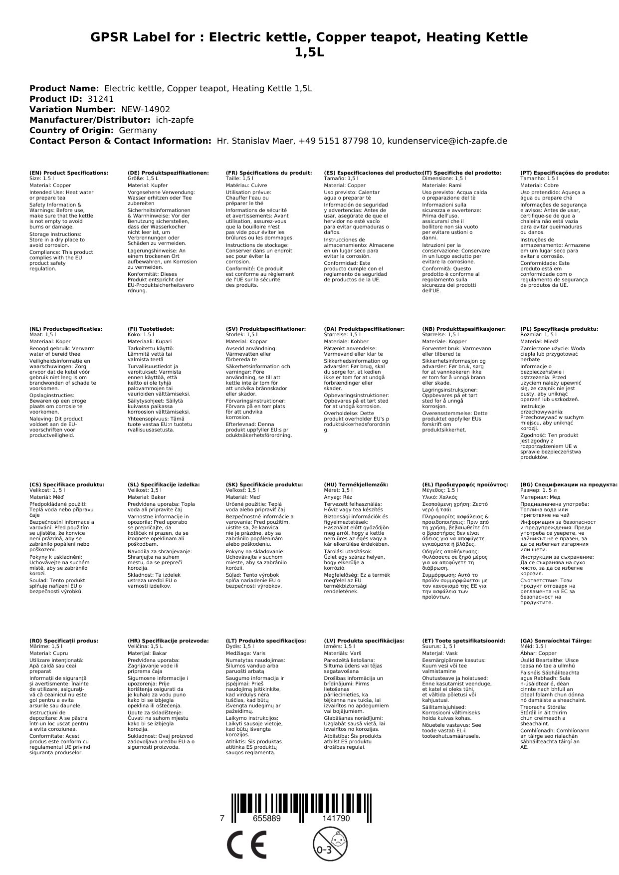 Bakrena vodna džezva z zmogljivostjo 1,5L je popoln pripomoček za pripravo toplih napitkov. Izdelana iz bakra z notranjim cinkanjem zagotavlja higiensko in varno uporabo.