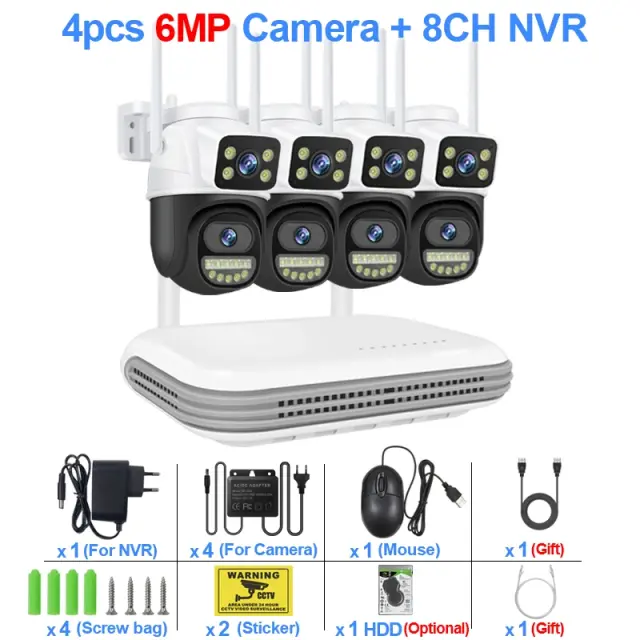 Brezžični varnostni sistem kamer, 6MP dvojna leča, dvosmerni zvok -8CH NVR in 4 Kamere -1T