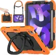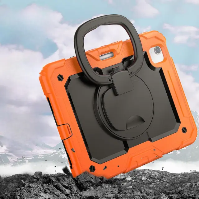 Ovitni ovitek je zasnovan za zagotavljanje celovite zaščite vaše tablične naprave med vsakodnevno uporabo v različnih okoljih. Izdelek je sestavljen iz treh plasti, ki vključujejo trdno plastično ohišje in mehko silikonsko hrbtišče za ublažitev zunanjih vplivov. Ovitek je opremljen z vgrajenim zložljivim stojalom, ki se vrti za polnih 360 stopinj, kar uporabniku omogoča prilagajanje kota gledanja glede na trenutne potrebe. Takšna zasnova je primerna tako za profesionalno uporabo pri predstavitvah kot za varno uporabo v rokah mlajših družinskih članov.