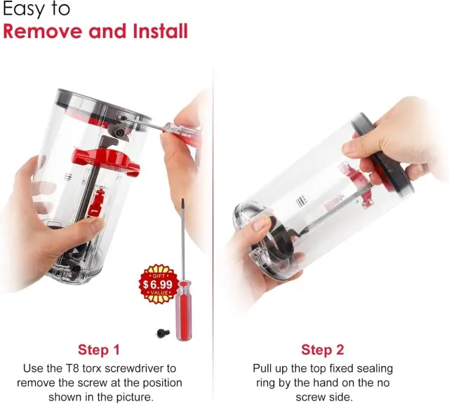 Enostavna namestitev: Prosimo, upoštevajte: to niso originalni deli. Komplet vključuje tesnilni obroč in izvijač, kar omogoča hitro in enostavno namestitev. Ni vam treba kupovati dodatnega orodja ali iskati strokovne pomoči. Preprosto odstranite staro tesnilko in jo zamenjajte z novo. S tem prihranite čas in denar, hkrati pa zagotovite, da vaš sesalnik deluje brezhibno.