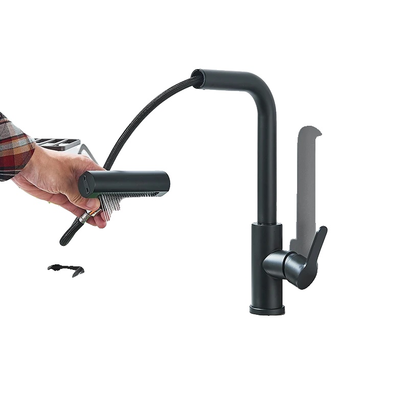 Kuhinjska pipa, 360° rotacija, izvlečna šoba -Črna