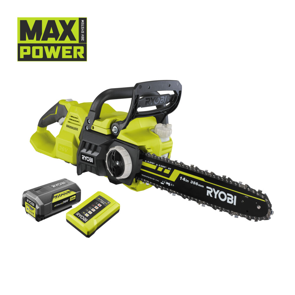 RYOBI RY36CSX35A-150 36V MAX POWER aku. verižna žaga, 35cm + 5Ah bat + polnilec