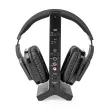 Nedis, RF brezžične televizijske slušalke za ušesa s polnilno postajo in dosegom 25 m, Črna