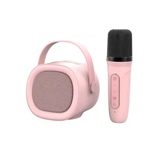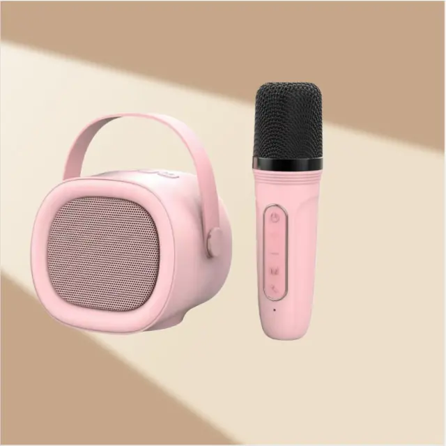 Prenosni Karaoke Bluetooth 5.3 Zvočnik z Brezžičnim Mikrofonom, HIFI Zvok Pink