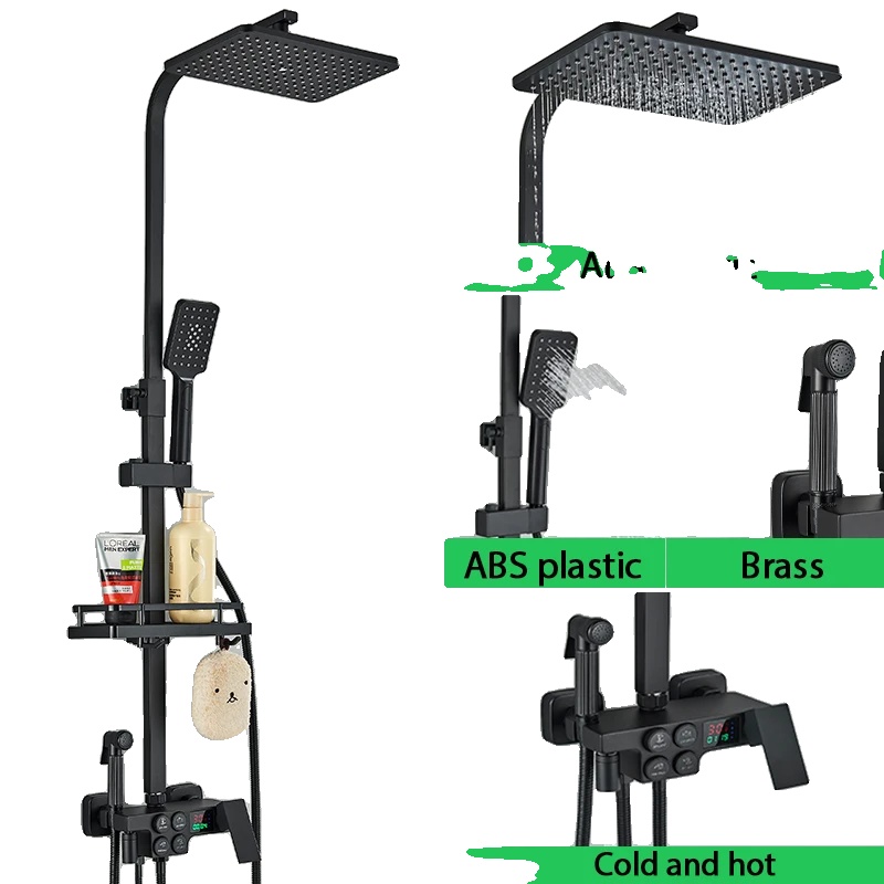 Kopalniška tuš set, termostatska kontrola, trpežna medeninasta površina, črna vroča