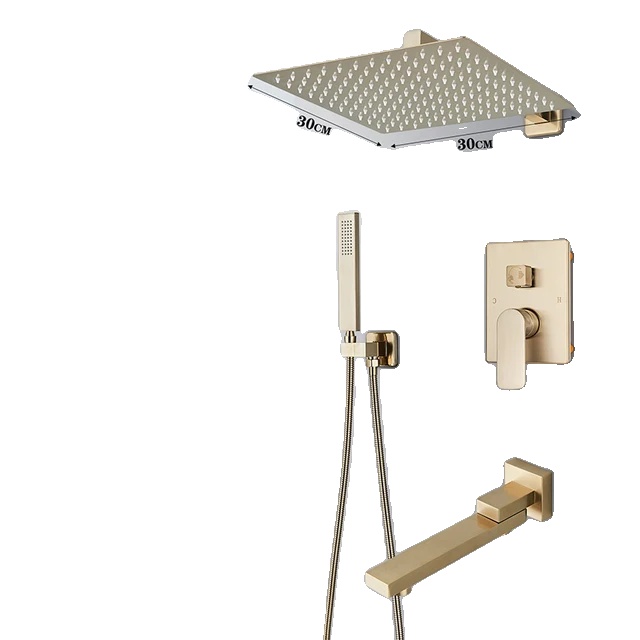 Sprchová batéria, brúsený zlatý povrch, dažďová sprchová hlavica - 3 Cestný 12palcový B