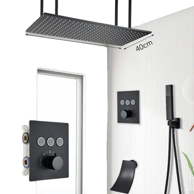 Luxusná sprchová batéria do kúpeľne, 80cm dažďová sprchová hlavica, matný čierny povrch - 4080cm 3 Spôsoby B