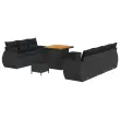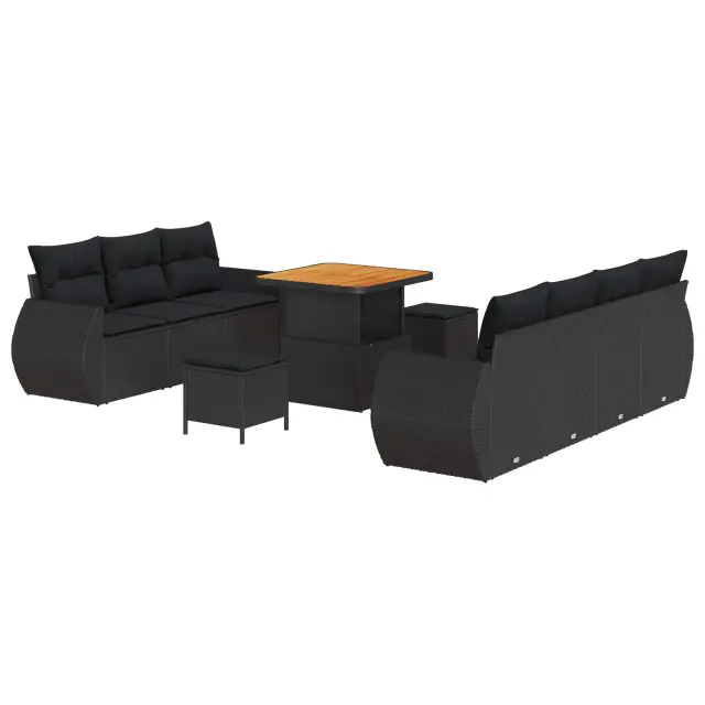 vidaXL Vrtna sedežna garnitura z blazino 10 pcs Črna poli ratan