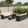 vidaXL Vrtna sedežna garnitura z blazino 11 pcs Črna poli ratan