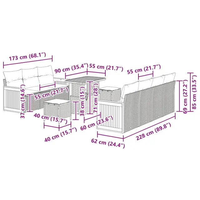 Ta sodoben vrtni kavč set je idealen za zunanjo izkušnjo, zasnovan s preprostostjo in funkcionalnostjo. S svojimi čistimi linijami in minimalistično estetiko, ta set dvigne vaš vrtni prostor na novo raven elegančnosti. Naj bo to za srečanja ali mirno uživanje na prostem, ta vsestranski set ponuja stil in udobje s svojo sofisticirano podobo in praktičnimi elementi.