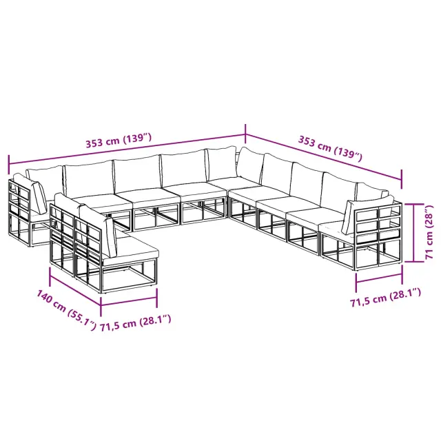 Ta komplet vrtnega kavča se odlično ujema s sodobnim dizajnom in trdnim aluminijem, kar ga naredi idealnega za vaš zunanji prostor. Nič več kot sleek linije in funkcionalnost, ta set je super sprostitvena zona za pomladne in poletne družbe ter vidno izboljša vsako teraso ali vrt. Ustvarja vabljive prostore za družino in prijatelje ter odlično ozadje za nepozabne trenutke na prostem.