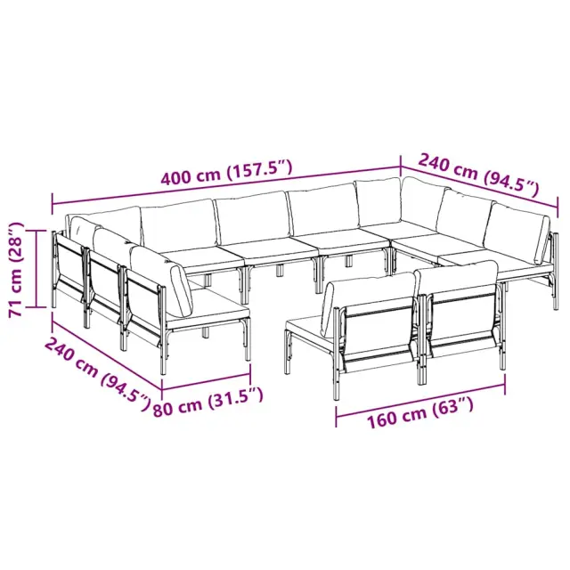 • 9 x srednja sedežna: 80 x 80 x 71 cm (DxŠxV)