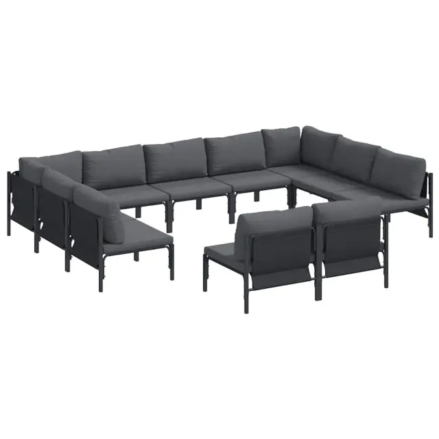 vidaXL Vrtna sedežna garnitura z blazino 11 pcs Črna Jeklo