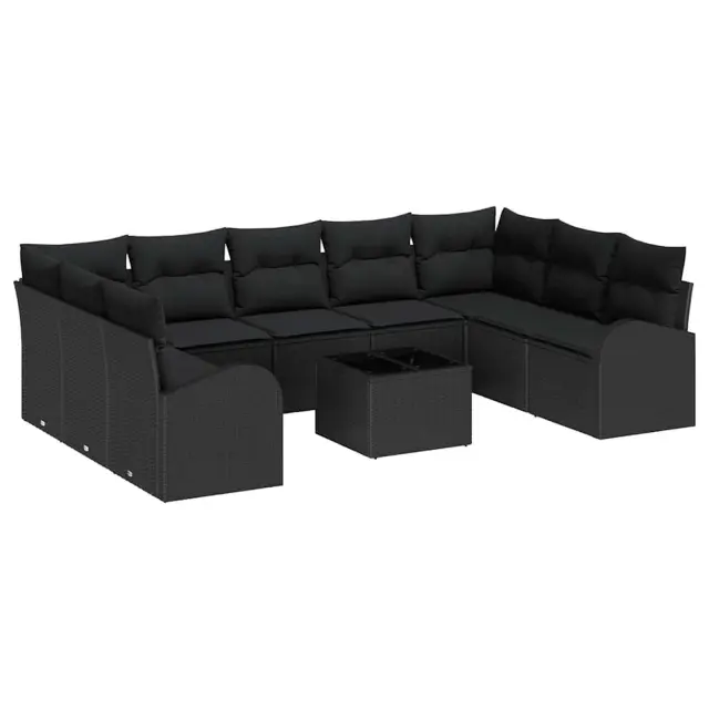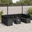 vidaXL Vrtna sedežna garnitura z blazino 10 pcs Črna poli ratan