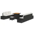 vidaXL Vrtna sedežna garnitura z blazino 10 pcs Črna poli ratan