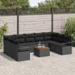 vidaXL Vrtna sedežna garnitura z blazino 10 pcs Črna poli ratan