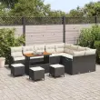 vidaXL Vrtna sedežna garnitura z blazino 13 pcs Črna poli ratan