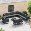 Ta eleganten vrtni sedežni komplet s blazinami je super dodatek vašemu zunanjemu prostoru. Njegov sodoben stil združuje preprostost in funkcionalnost, kar odlično dopolnjuje vsak vrt ali teraso. S specialnimi blazinami, ki se prilegajo robustnemu aluminijastemu okvirju, je ta komplet odličen za sproščanje in družabna srečanja v spomladanskih in poletnih mesecih, ter nudi prijeten prostor za uživanje na prostem.