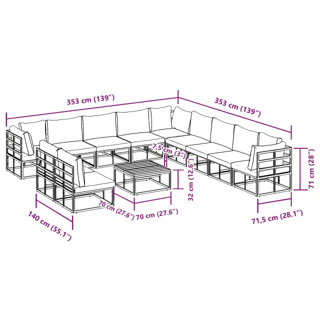 Ta komplet vrtnega kavča se odlično ujema s sodobnim dizajnom in trdnim aluminijem, kar ga naredi idealnega za vaš zunanji prostor. Nič več kot sleek linije in funkcionalnost, ta set je super sprostitvena zona za pomladne in poletne družbe ter vidno izboljša vsako teraso ali vrt. Ustvarja vabljive prostore za družino in prijatelje ter odlično ozadje za nepozabne trenutke na prostem.