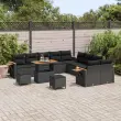 vidaXL Vrtna sedežna garnitura z blazino 17 pcs Črna poli ratan
