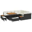 vidaXL Vrtna sedežna garnitura z blazino 12 pcs Črna Poly ratan