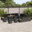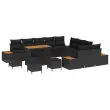 vidaXL Vrtna sedežna garnitura z blazino 14 pcs Črna Poly ratan